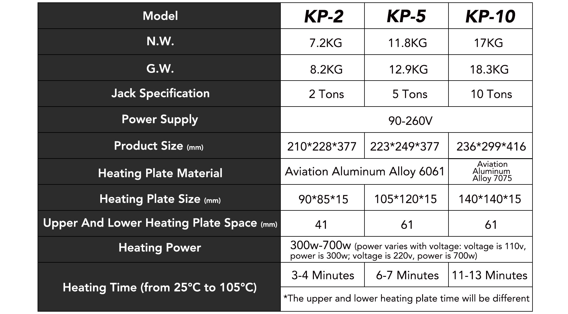 Jack Specification:2tons/ 5tons/ 10tons Power Supply:90-260V Heating Power:300w-700w (power varies with voltage: voltage is 110v, power is 300w; voltage is 220v, power is 700w)